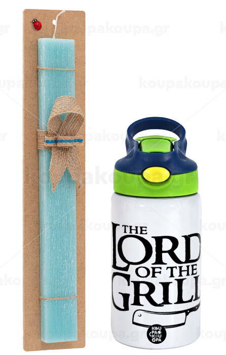The Lord of the Grill, Πασχαλινή Λαμπάδα με Παιδικό παγούρι θερμό, ανοξείδωτο, με καλαμάκι ασφαλείας, πράσινο/μπλε (350ml) & κερί αρωματικό πλακέ (30cm) (ΤΙΡΚΟΥΑΖ)