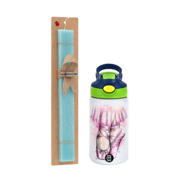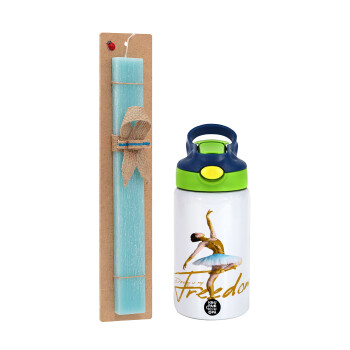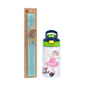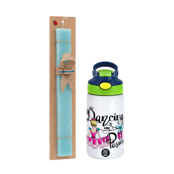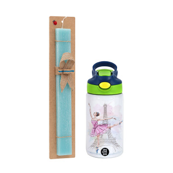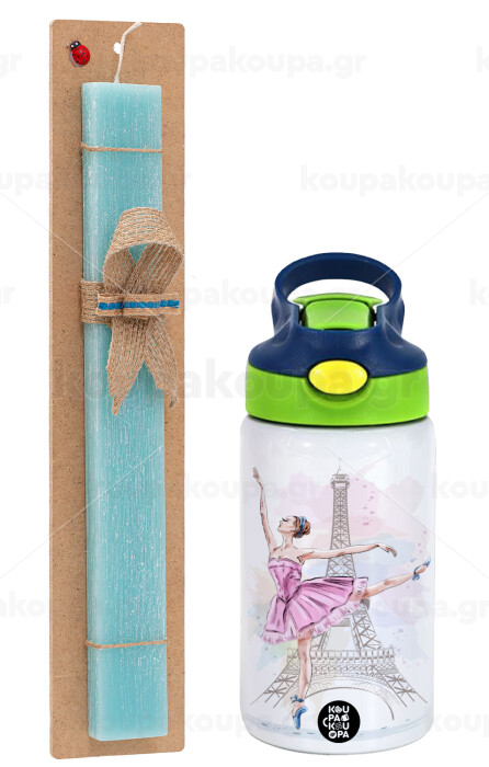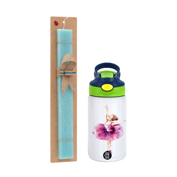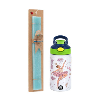 Ballerina in Paris, Πασχαλινή Λαμπάδα με Παιδικό παγούρι θερμό, ανοξείδωτο, με καλαμάκι ασφαλείας, πράσινο/μπλε (350ml) & κερί αρωματικό πλακέ (30cm) (ΤΙΡΚΟΥΑΖ)