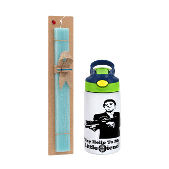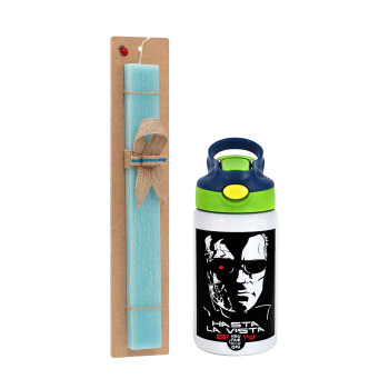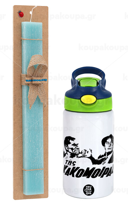 Της κακομοίρας, Πασχαλινή Λαμπάδα με Παιδικό παγούρι θερμό, ανοξείδωτο, με καλαμάκι ασφαλείας, πράσινο/μπλε (350ml) & κερί αρωματικό πλακέ (30cm) (ΤΙΡΚΟΥΑΖ)
