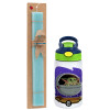 Baby Yoda mandalorian, Πασχαλινή Λαμπάδα με Παιδικό παγούρι θερμό, ανοξείδωτο, με καλαμάκι ασφαλείας, πράσινο/μπλε (350ml) & κερί αρωματικό πλακέ (30cm) (ΤΙΡΚΟΥΑΖ)