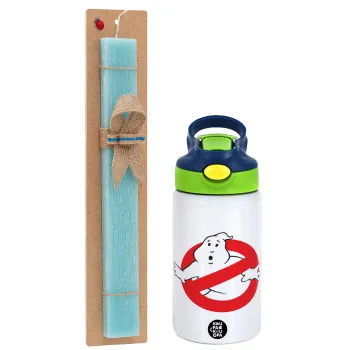 The Ghostbusters, Πασχαλινή Λαμπάδα με Παιδικό παγούρι θερμό, ανοξείδωτο, με καλαμάκι ασφαλείας, πράσινο/μπλε (350ml) & κερί αρωματικό πλακέ (30cm) (ΤΙΡΚΟΥΑΖ)