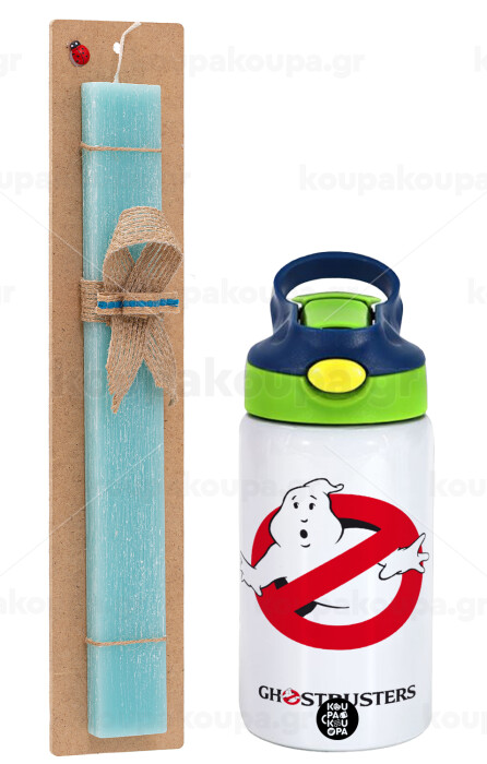 Ghostbusters, Πασχαλινή Λαμπάδα με Παιδικό παγούρι θερμό, ανοξείδωτο, με καλαμάκι ασφαλείας, πράσινο/μπλε (350ml) & κερί αρωματικό πλακέ (30cm) (ΤΙΡΚΟΥΑΖ)