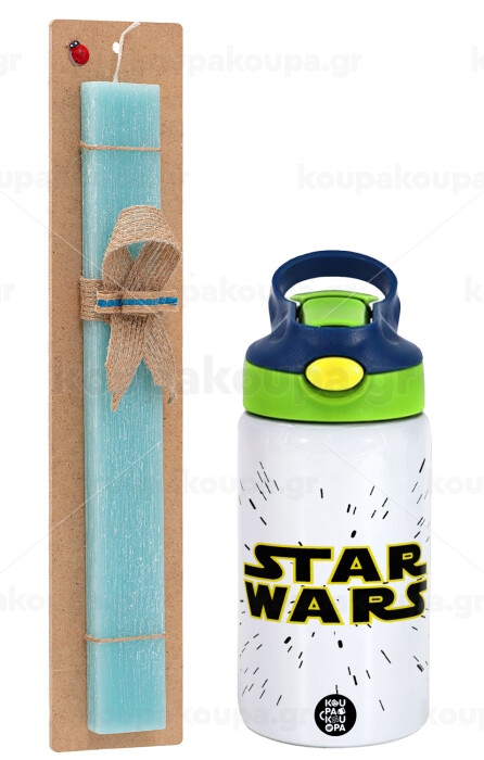Star Wars, Πασχαλινή Λαμπάδα με Παιδικό παγούρι θερμό, ανοξείδωτο, με καλαμάκι ασφαλείας, πράσινο/μπλε (350ml) & κερί αρωματικό πλακέ (30cm) (ΤΙΡΚΟΥΑΖ)