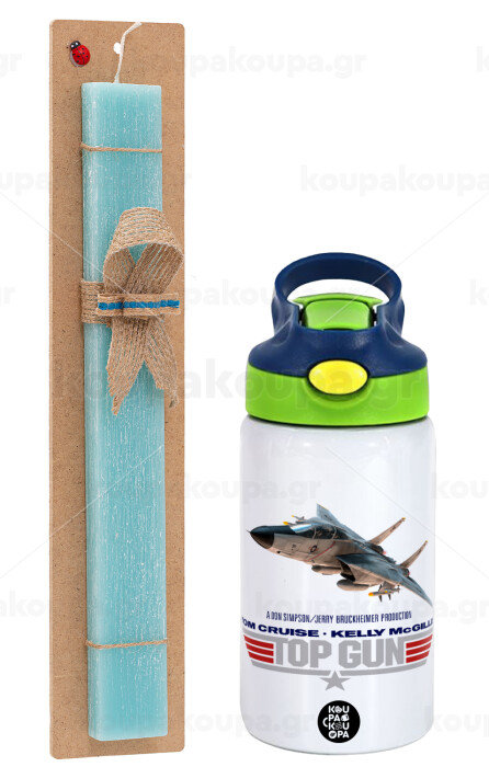 Top Gun, Πασχαλινή Λαμπάδα με Παιδικό παγούρι θερμό, ανοξείδωτο, με καλαμάκι ασφαλείας, πράσινο/μπλε (350ml) & κερί αρωματικό πλακέ (30cm) (ΤΙΡΚΟΥΑΖ)