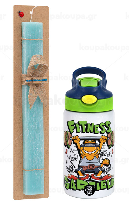 Garfield Fitness, Πασχαλινή Λαμπάδα με Παιδικό παγούρι θερμό, ανοξείδωτο, με καλαμάκι ασφαλείας, πράσινο/μπλε (350ml) & κερί αρωματικό πλακέ (30cm) (ΤΙΡΚΟΥΑΖ)