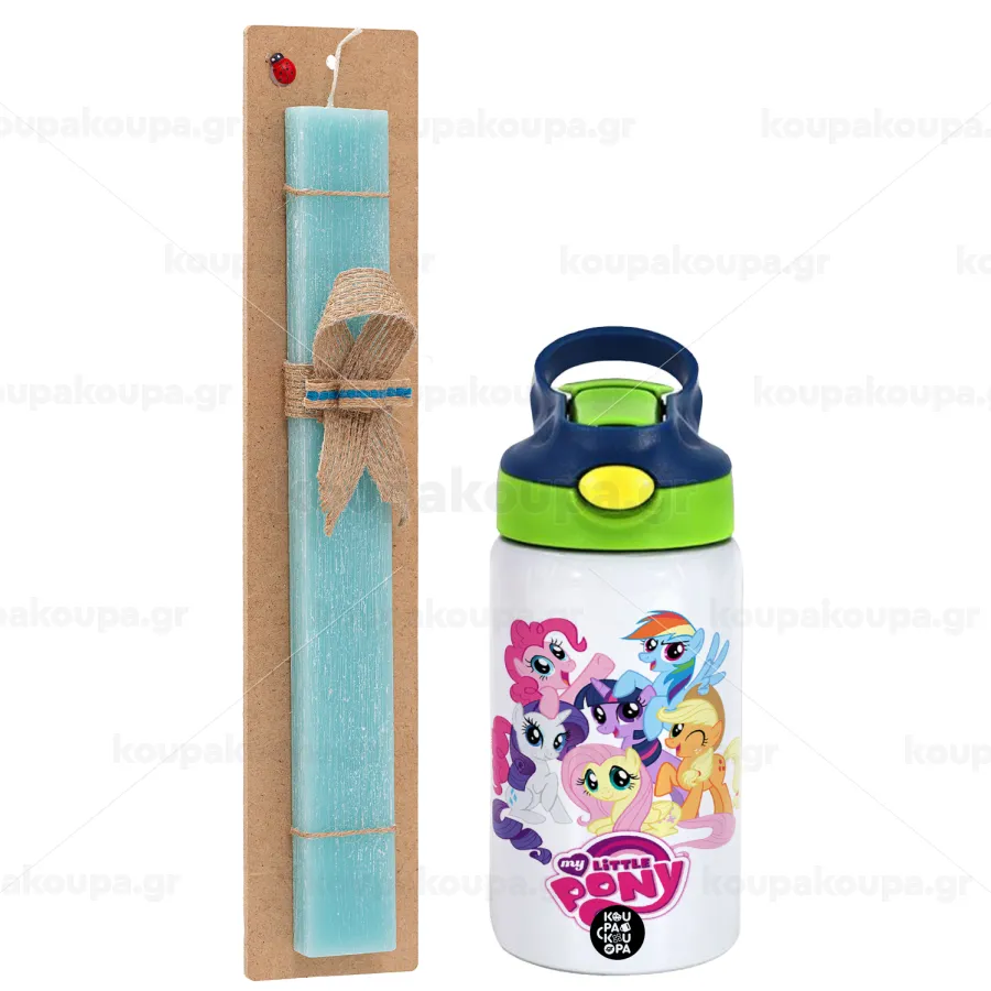 My Little Pony, Πασχαλινή Λαμπάδα με Παιδικό παγούρι θερμό, ανοξείδωτο, με καλαμάκι ασφαλείας, πράσινο/μπλε (350ml) & κερί αρωματικό πλακέ (30cm) (ΤΙΡΚΟΥΑΖ)