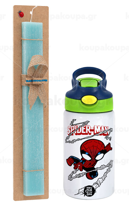 Spiderman kid, Πασχαλινή Λαμπάδα με Παιδικό παγούρι θερμό, ανοξείδωτο, με καλαμάκι ασφαλείας, πράσινο/μπλε (350ml) & κερί αρωματικό πλακέ (30cm) (ΤΙΡΚΟΥΑΖ)