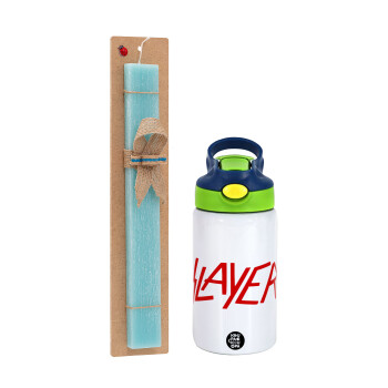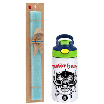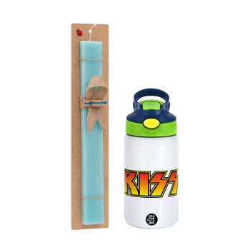Πασχαλινή Λαμπάδα με Παιδικό παγούρι θερμό, ανοξείδωτο, με καλαμάκι ασφαλείας, πράσινο/μπλε (350ml) & κερί αρωματικό πλακέ (30cm) (ΤΙΡΚΟΥΑΖ) με θέμα Μουσικές