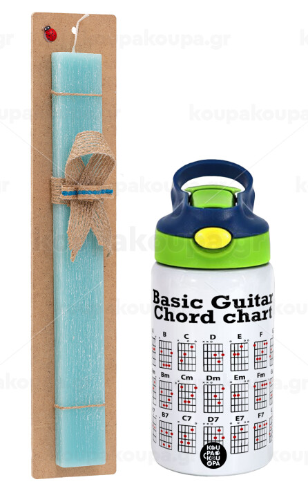 Συγχορδίες κιθάρας, Πασχαλινή Λαμπάδα με Παιδικό παγούρι θερμό, ανοξείδωτο, με καλαμάκι ασφαλείας, πράσινο/μπλε (350ml) & κερί αρωματικό πλακέ (30cm) (ΤΙΡΚΟΥΑΖ)