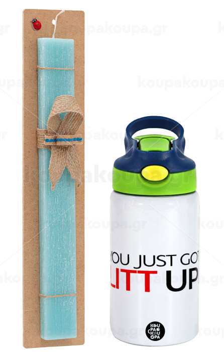 Suits You Just Got Litt Up! , Πασχαλινή Λαμπάδα με Παιδικό παγούρι θερμό, ανοξείδωτο, με καλαμάκι ασφαλείας, πράσινο/μπλε (350ml) & κερί αρωματικό πλακέ (30cm) (ΤΙΡΚΟΥΑΖ)