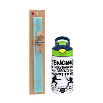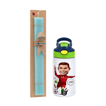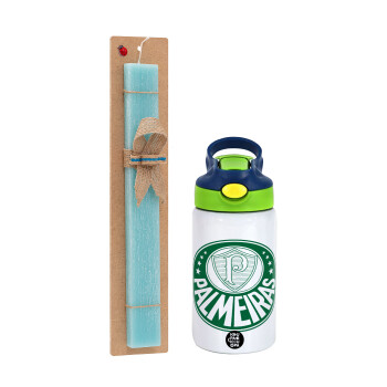 Πασχαλινή Λαμπάδα με Παιδικό παγούρι θερμό, ανοξείδωτο, με καλαμάκι ασφαλείας, πράσινο/μπλε (350ml) & κερί αρωματικό πλακέ (30cm) (ΤΙΡΚΟΥΑΖ) με θέμα Αθλητικά