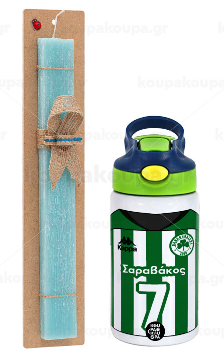 Παναθηναϊκός εμφάνιση, Πασχαλινή Λαμπάδα με Παιδικό παγούρι θερμό, ανοξείδωτο, με καλαμάκι ασφαλείας, πράσινο/μπλε (350ml) & κερί αρωματικό πλακέ (30cm) (ΤΙΡΚΟΥΑΖ)