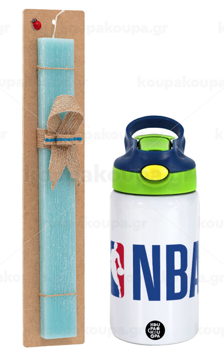 NBA Classic, Πασχαλινή Λαμπάδα με Παιδικό παγούρι θερμό, ανοξείδωτο, με καλαμάκι ασφαλείας, πράσινο/μπλε (350ml) & κερί αρωματικό πλακέ (30cm) (ΤΙΡΚΟΥΑΖ)