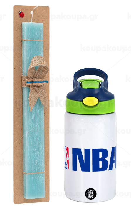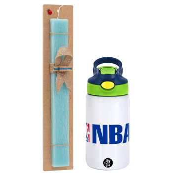 NBA, Πασχαλινή Λαμπάδα με Παιδικό παγούρι θερμό, ανοξείδωτο, με καλαμάκι ασφαλείας, πράσινο/μπλε (350ml) & κερί αρωματικό πλακέ (30cm) (ΤΙΡΚΟΥΑΖ)