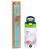 Λευκός κύκνος, Πασχαλινή Λαμπάδα με Παιδικό παγούρι θερμό, ανοξείδωτο, με καλαμάκι ασφαλείας, πράσινο/μπλε (350ml) & κερί αρωματικό πλακέ (30cm) (ΤΙΡΚΟΥΑΖ)