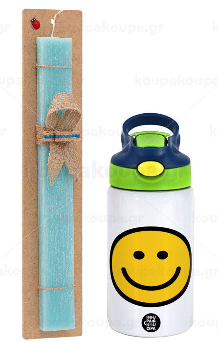 Smile classic, Πασχαλινή Λαμπάδα με Παιδικό παγούρι θερμό, ανοξείδωτο, με καλαμάκι ασφαλείας, πράσινο/μπλε (350ml) & κερί αρωματικό πλακέ (30cm) (ΤΙΡΚΟΥΑΖ)