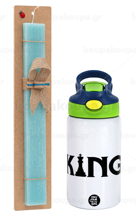 King chess, Πασχαλινή Λαμπάδα με Παιδικό παγούρι θερμό, ανοξείδωτο, με καλαμάκι ασφαλείας, πράσινο/μπλε (350ml) & κερί αρωματικό πλακέ (30cm) (ΤΙΡΚΟΥΑΖ)