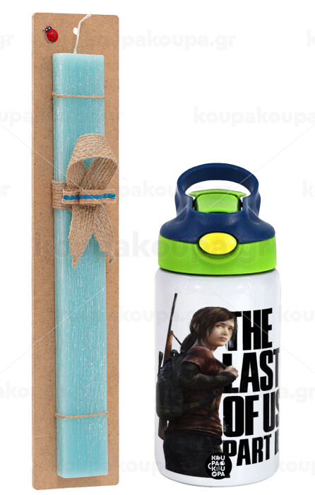 Last of us, Ellie, Πασχαλινή Λαμπάδα με Παιδικό παγούρι θερμό, ανοξείδωτο, με καλαμάκι ασφαλείας, πράσινο/μπλε (350ml) & κερί αρωματικό πλακέ (30cm) (ΤΙΡΚΟΥΑΖ)