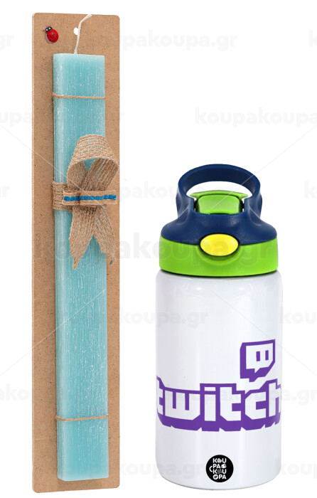 Twitch, Πασχαλινή Λαμπάδα με Παιδικό παγούρι θερμό, ανοξείδωτο, με καλαμάκι ασφαλείας, πράσινο/μπλε (350ml) & κερί αρωματικό πλακέ (30cm) (ΤΙΡΚΟΥΑΖ)