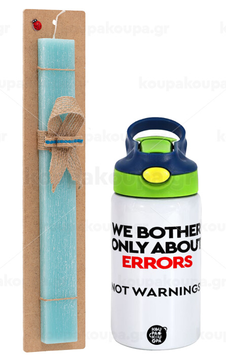 We bother only about errors, not warnings, Πασχαλινή Λαμπάδα με Παιδικό παγούρι θερμό, ανοξείδωτο, με καλαμάκι ασφαλείας, πράσινο/μπλε (350ml) & κερί αρωματικό πλακέ (30cm) (ΤΙΡΚΟΥΑΖ)