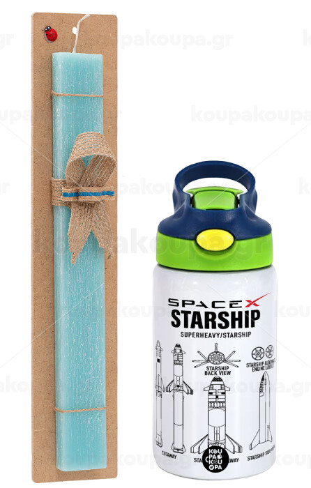 Space X, Πασχαλινή Λαμπάδα με Παιδικό παγούρι θερμό, ανοξείδωτο, με καλαμάκι ασφαλείας, πράσινο/μπλε (350ml) & κερί αρωματικό πλακέ (30cm) (ΤΙΡΚΟΥΑΖ)