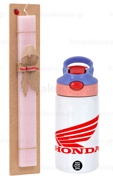 Honda, Πασχαλινή Λαμπάδα με Παιδικό παγούρι θερμό, ανοξείδωτο, με καλαμάκι ασφαλείας, ροζ/μωβ (350ml) & κερί αρωματικό πλακέ (30cm) (ΡΟΖ)
