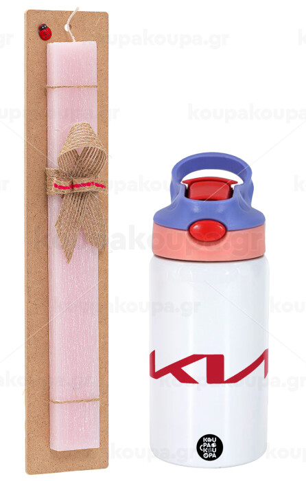 KIA, Πασχαλινή Λαμπάδα με Παιδικό παγούρι θερμό, ανοξείδωτο, με καλαμάκι ασφαλείας, ροζ/μωβ (350ml) & κερί αρωματικό πλακέ (30cm) (ΡΟΖ)