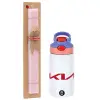 KIA, Πασχαλινή Λαμπάδα με Παιδικό παγούρι θερμό, ανοξείδωτο, με καλαμάκι ασφαλείας, ροζ/μωβ (350ml) & κερί αρωματικό πλακέ (30cm) (ΡΟΖ)