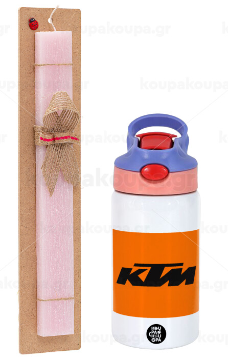 KTM, Πασχαλινή Λαμπάδα με Παιδικό παγούρι θερμό, ανοξείδωτο, με καλαμάκι ασφαλείας, ροζ/μωβ (350ml) & κερί αρωματικό πλακέ (30cm) (ΡΟΖ)