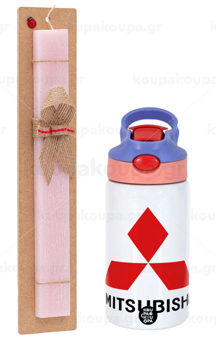 mitsubishi, Πασχαλινή Λαμπάδα με Παιδικό παγούρι θερμό, ανοξείδωτο, με καλαμάκι ασφαλείας, ροζ/μωβ (350ml) & κερί αρωματικό πλακέ (30cm) (ΡΟΖ)