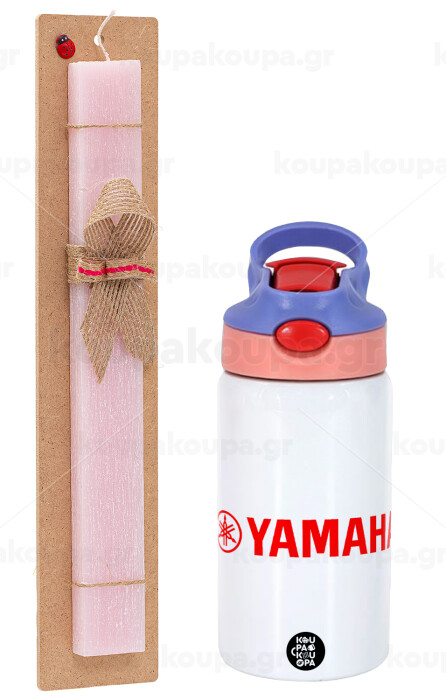 Yamaha, Πασχαλινή Λαμπάδα με Παιδικό παγούρι θερμό, ανοξείδωτο, με καλαμάκι ασφαλείας, ροζ/μωβ (350ml) & κερί αρωματικό πλακέ (30cm) (ΡΟΖ)