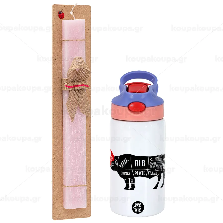 Diagrams for butcher shop, Πασχαλινή Λαμπάδα με Παιδικό παγούρι θερμό, ανοξείδωτο, με καλαμάκι ασφαλείας, ροζ/μωβ (350ml) & κερί αρωματικό πλακέ (30cm) (ΡΟΖ)