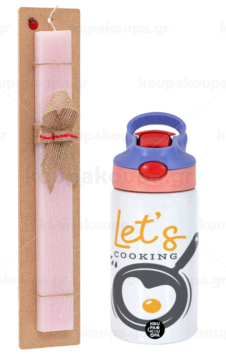 Let's cooking, Πασχαλινή Λαμπάδα με Παιδικό παγούρι θερμό, ανοξείδωτο, με καλαμάκι ασφαλείας, ροζ/μωβ (350ml) & κερί αρωματικό πλακέ (30cm) (ΡΟΖ)