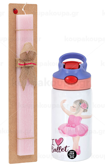 I Love Ballet, Πασχαλινή Λαμπάδα με Παιδικό παγούρι θερμό, ανοξείδωτο, με καλαμάκι ασφαλείας, ροζ/μωβ (350ml) & κερί αρωματικό πλακέ (30cm) (ΡΟΖ)