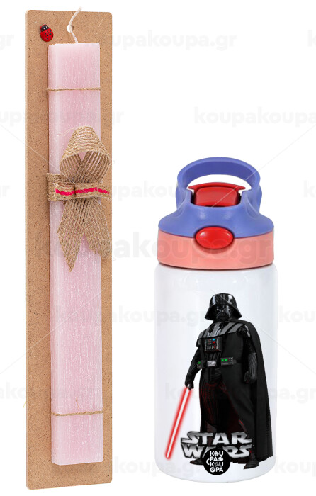 Darth vader, Πασχαλινή Λαμπάδα με Παιδικό παγούρι θερμό, ανοξείδωτο, με καλαμάκι ασφαλείας, ροζ/μωβ (350ml) & κερί αρωματικό πλακέ (30cm) (ΡΟΖ)