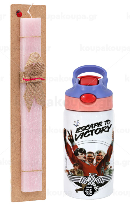 Escape to victory, Πασχαλινή Λαμπάδα με Παιδικό παγούρι θερμό, ανοξείδωτο, με καλαμάκι ασφαλείας, ροζ/μωβ (350ml) & κερί αρωματικό πλακέ (30cm) (ΡΟΖ)