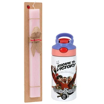 Escape to victory, Πασχαλινή Λαμπάδα με Παιδικό παγούρι θερμό, ανοξείδωτο, με καλαμάκι ασφαλείας, ροζ/μωβ (350ml) & κερί αρωματικό πλακέ (30cm) (ΡΟΖ)