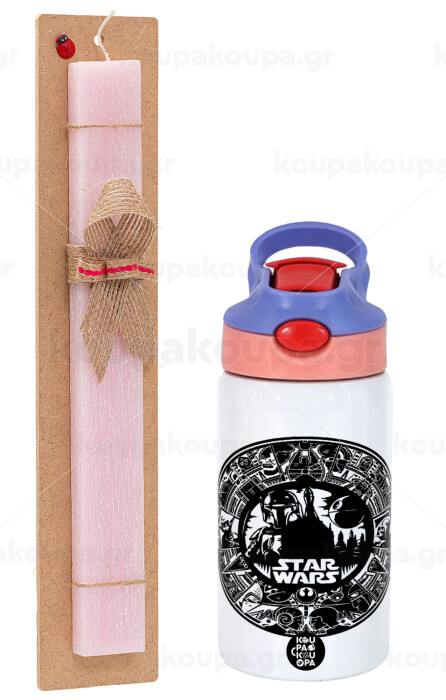 Star Wars Disk, Πασχαλινή Λαμπάδα με Παιδικό παγούρι θερμό, ανοξείδωτο, με καλαμάκι ασφαλείας, ροζ/μωβ (350ml) & κερί αρωματικό πλακέ (30cm) (ΡΟΖ)
