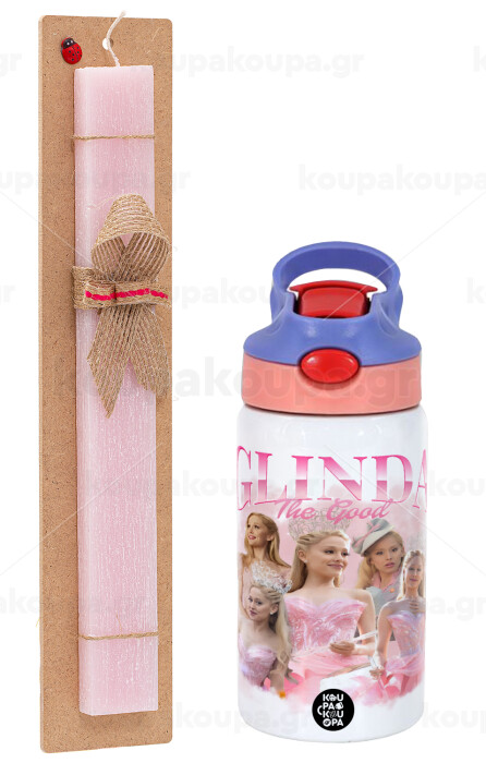 Wicked Glinda, Πασχαλινή Λαμπάδα με Παιδικό παγούρι θερμό, ανοξείδωτο, με καλαμάκι ασφαλείας, ροζ/μωβ (350ml) & κερί αρωματικό πλακέ (30cm) (ΡΟΖ)