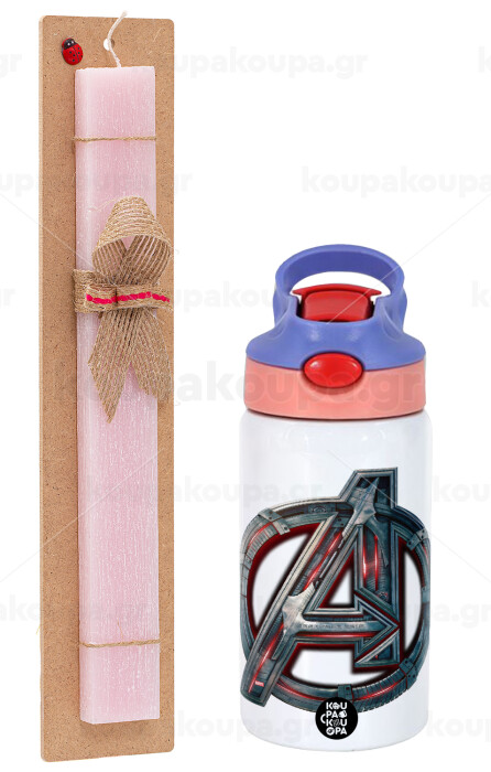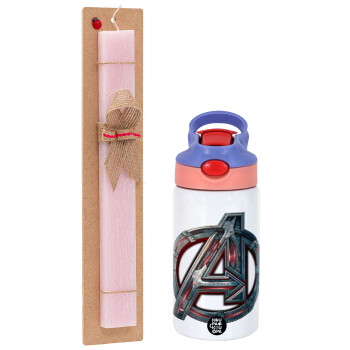 Avengers, Πασχαλινή Λαμπάδα με Παιδικό παγούρι θερμό, ανοξείδωτο, με καλαμάκι ασφαλείας, ροζ/μωβ (350ml) & κερί αρωματικό πλακέ (30cm) (ΡΟΖ)