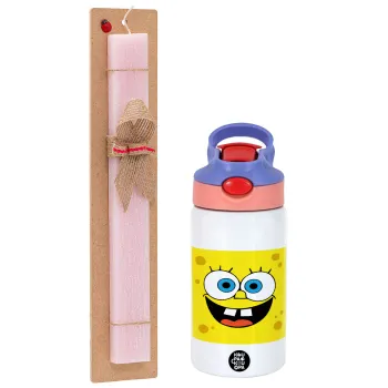 Μπομπ, Πασχαλινή Λαμπάδα με Παιδικό παγούρι θερμό, ανοξείδωτο, με καλαμάκι ασφαλείας, ροζ/μωβ (350ml) & κερί αρωματικό πλακέ (30cm) (ΡΟΖ)