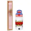 BOOM!!!, Πασχαλινή Λαμπάδα με Παιδικό παγούρι θερμό, ανοξείδωτο, με καλαμάκι ασφαλείας, ροζ/μωβ (350ml) & κερί αρωματικό πλακέ (30cm) (ΡΟΖ)