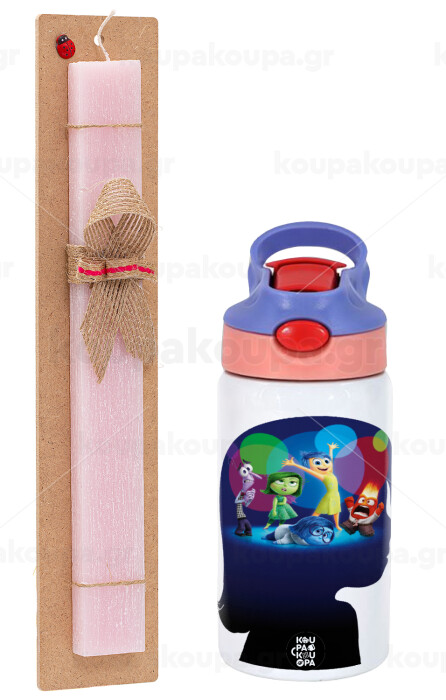 Τα Μυαλά που Κουβαλάς, Πασχαλινή Λαμπάδα με Παιδικό παγούρι θερμό, ανοξείδωτο, με καλαμάκι ασφαλείας, ροζ/μωβ (350ml) & κερί αρωματικό πλακέ (30cm) (ΡΟΖ)