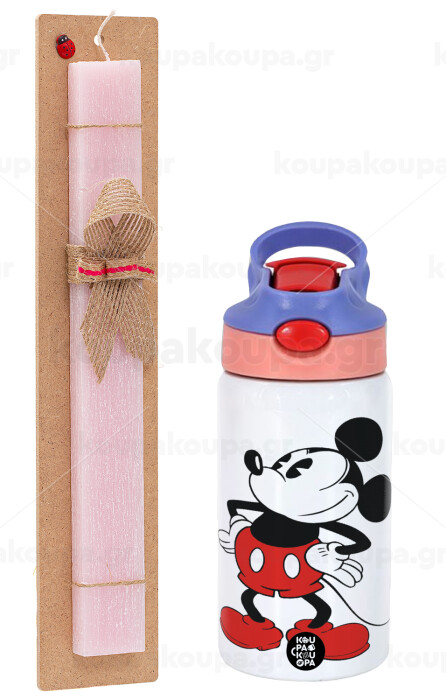 Mickey Classic, Πασχαλινή Λαμπάδα με Παιδικό παγούρι θερμό, ανοξείδωτο, με καλαμάκι ασφαλείας, ροζ/μωβ (350ml) & κερί αρωματικό πλακέ (30cm) (ΡΟΖ)
