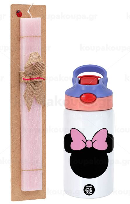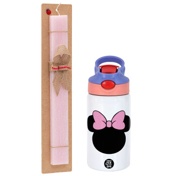 mouse girl, Πασχαλινή Λαμπάδα με Παιδικό παγούρι θερμό, ανοξείδωτο, με καλαμάκι ασφαλείας, ροζ/μωβ (350ml) & κερί αρωματικό πλακέ (30cm) (ΡΟΖ)