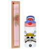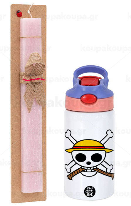 Onepiece skull, Πασχαλινή Λαμπάδα με Παιδικό παγούρι θερμό, ανοξείδωτο, με καλαμάκι ασφαλείας, ροζ/μωβ (350ml) & κερί αρωματικό πλακέ (30cm) (ΡΟΖ)