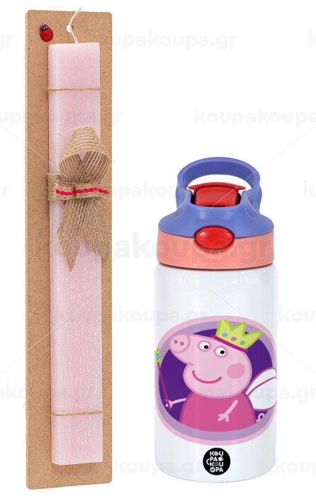 Peppa pig Queen, Πασχαλινή Λαμπάδα με Παιδικό παγούρι θερμό, ανοξείδωτο, με καλαμάκι ασφαλείας, ροζ/μωβ (350ml) & κερί αρωματικό πλακέ (30cm) (ΡΟΖ)