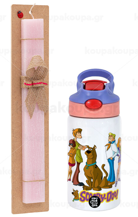 Scooby Doo Characters, Πασχαλινή Λαμπάδα με Παιδικό παγούρι θερμό, ανοξείδωτο, με καλαμάκι ασφαλείας, ροζ/μωβ (350ml) & κερί αρωματικό πλακέ (30cm) (ΡΟΖ)