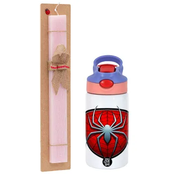 Spider-man, Πασχαλινή Λαμπάδα με Παιδικό παγούρι θερμό, ανοξείδωτο, με καλαμάκι ασφαλείας, ροζ/μωβ (350ml) & κερί αρωματικό πλακέ (30cm) (ΡΟΖ)