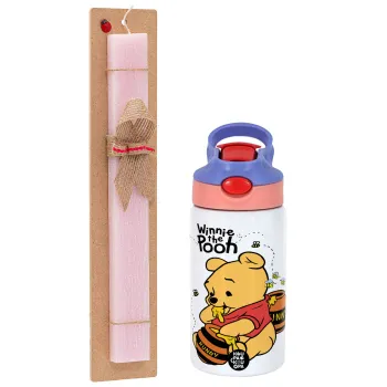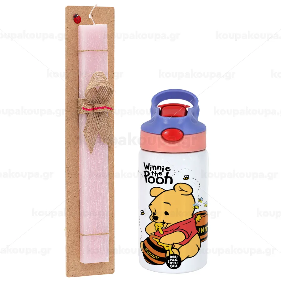 Γουίνι το Αρκουδάκι , Πασχαλινή Λαμπάδα με Παιδικό παγούρι θερμό, ανοξείδωτο, με καλαμάκι ασφαλείας, ροζ/μωβ (350ml) & κερί αρωματικό πλακέ (30cm) (ΡΟΖ)
